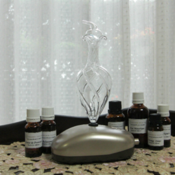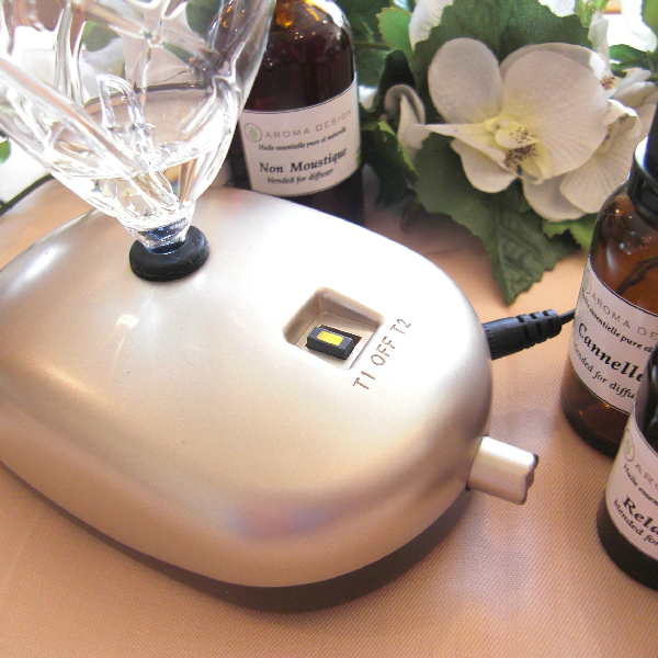 グラスバルブ内の精油を最後まで吸い上げて芳香し、精油を無駄にしません。そして精油を原液のまま細かなミスト状(霧状)にして空気の力で噴霧しますので、〝香り〟に変化は無く、精油本来の香りと成分をそのまま噴霧します。また、精油の使用量も経済的にそして効果的に消費します。